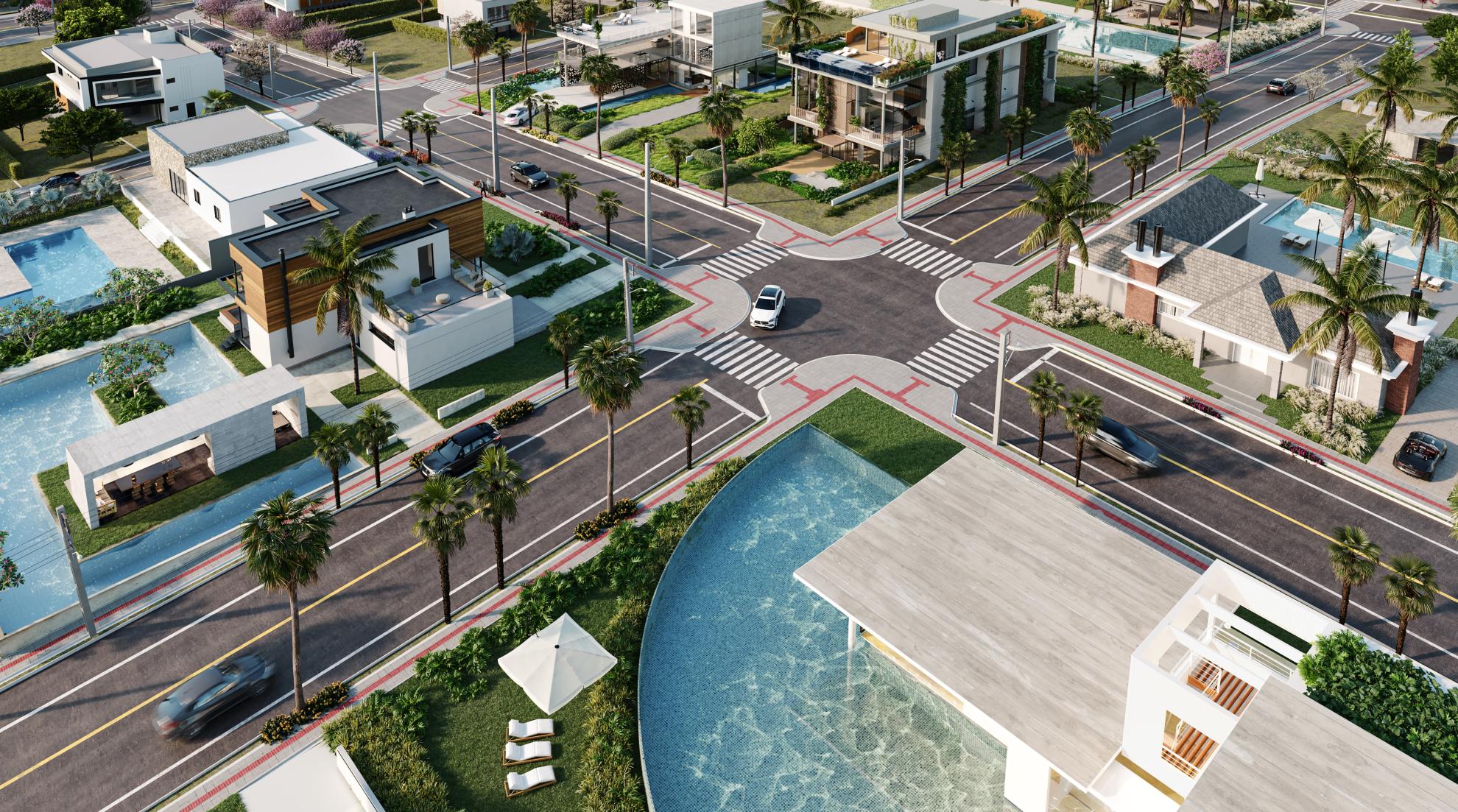 Terrenos residenciais nas ruas acalmadas e terrenos comerciais com zoneamento diferenciado nas avenidas.