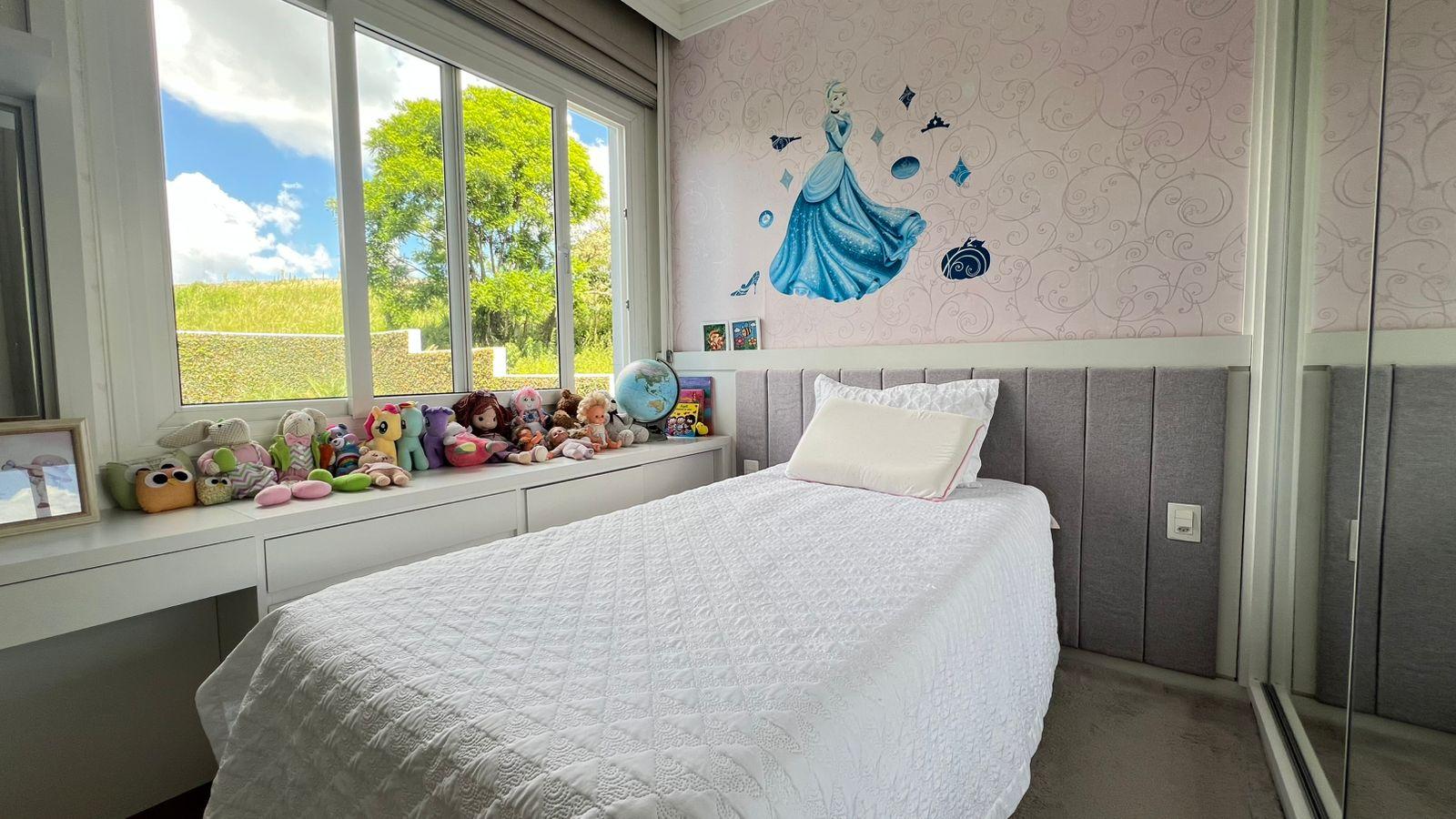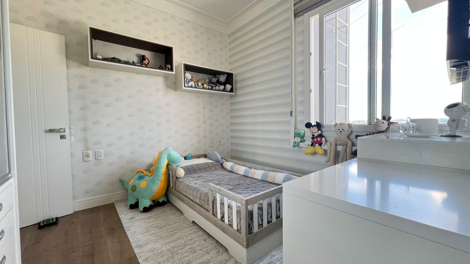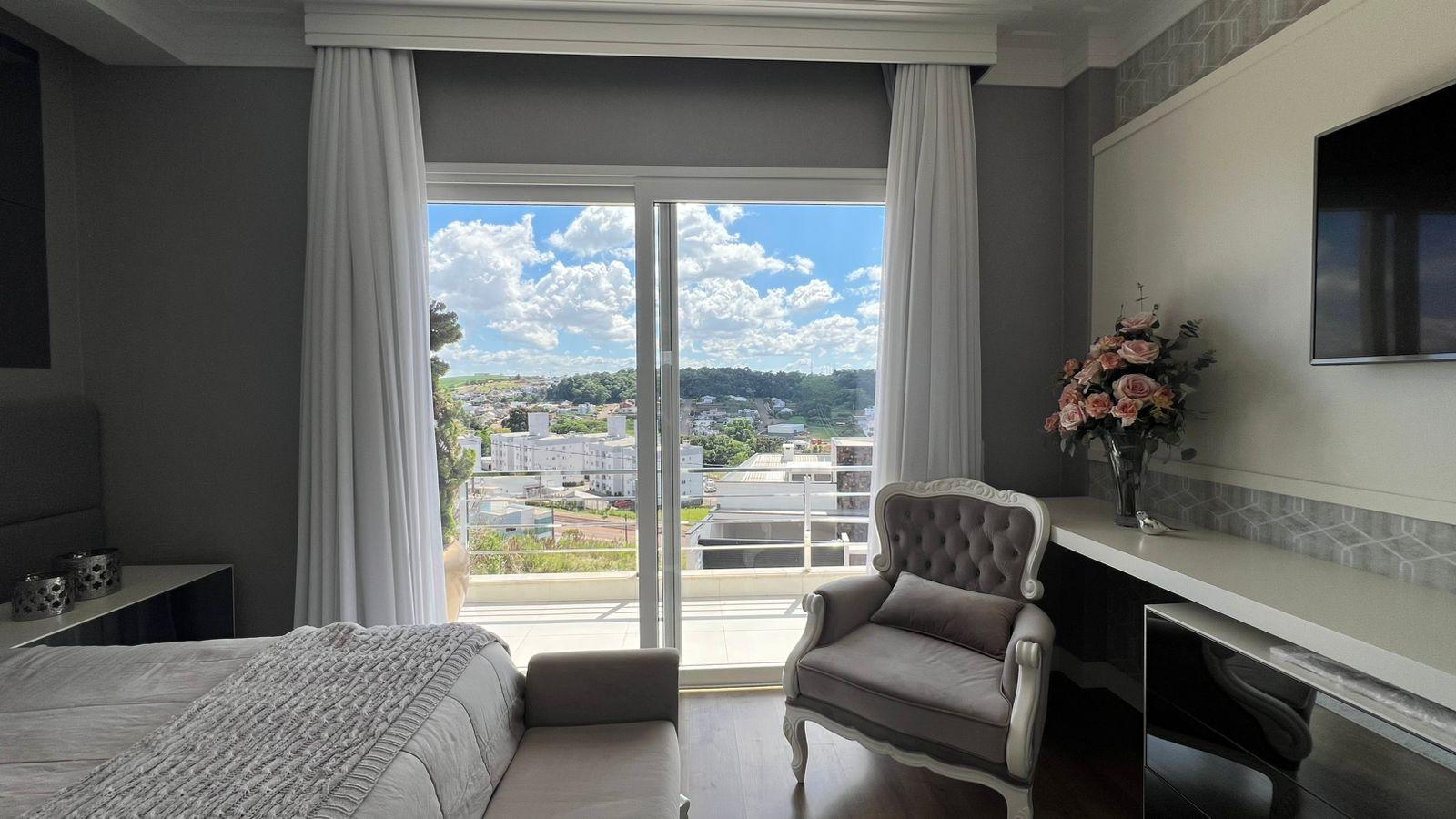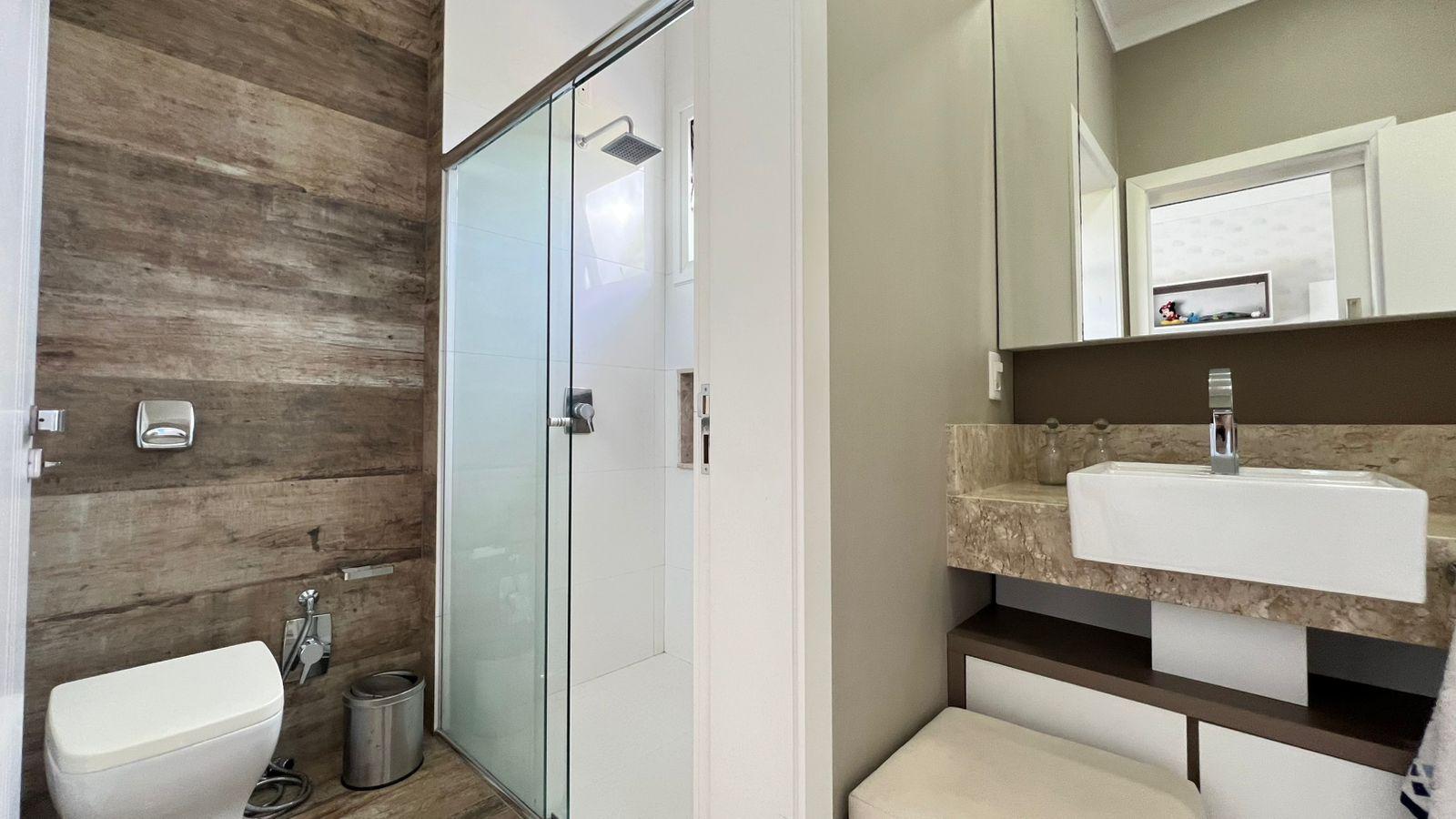 1 suíte com closet + 2 demi‑suítes; salas de estar e TV; cozinha; escritório; lavabo; banheiro social.