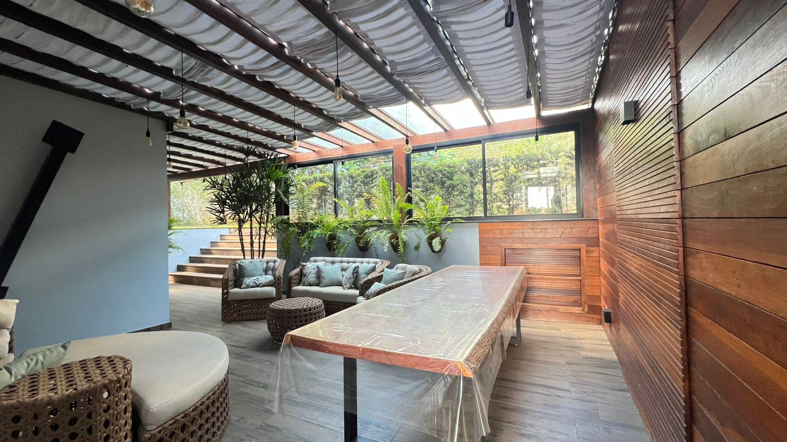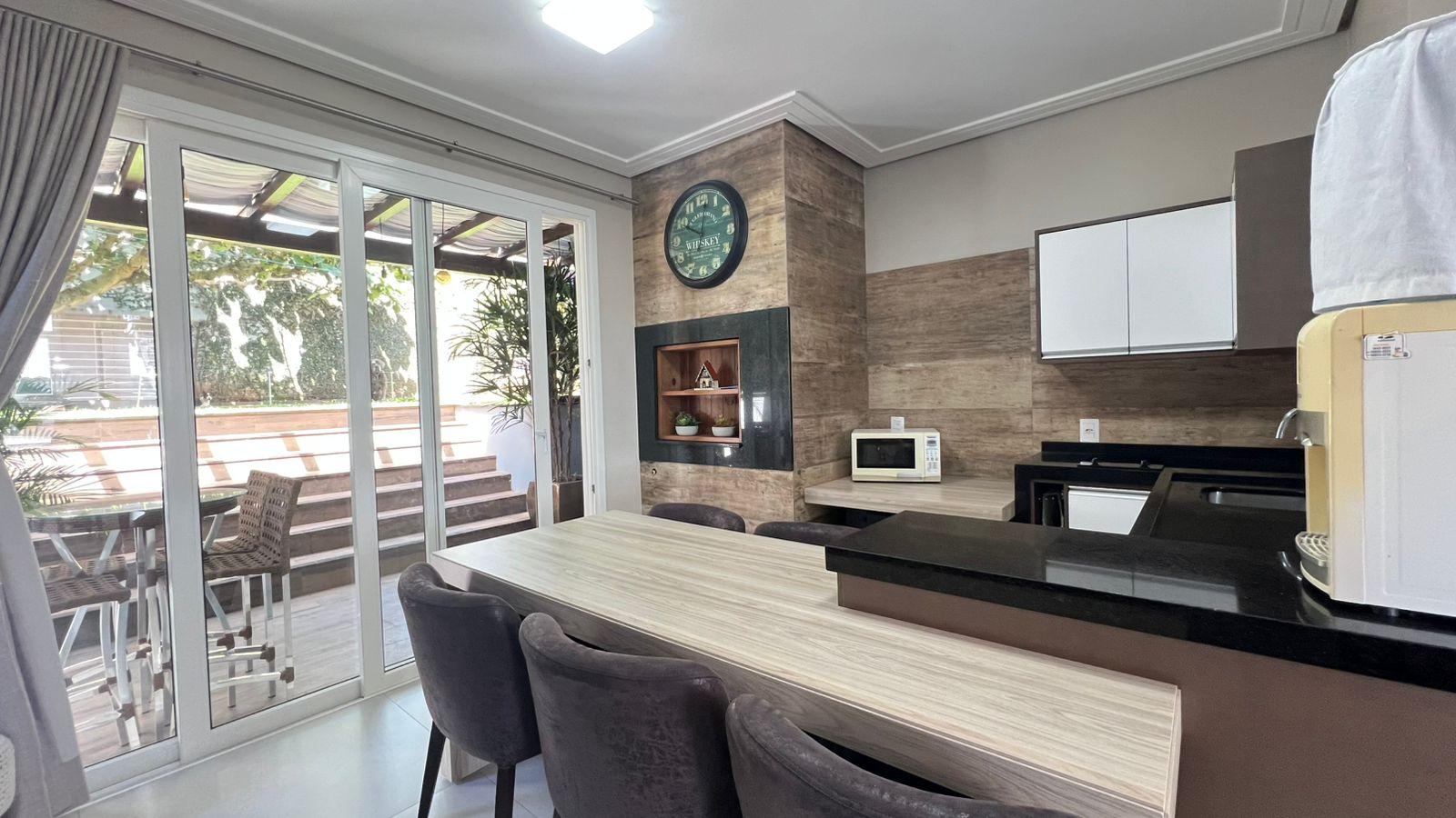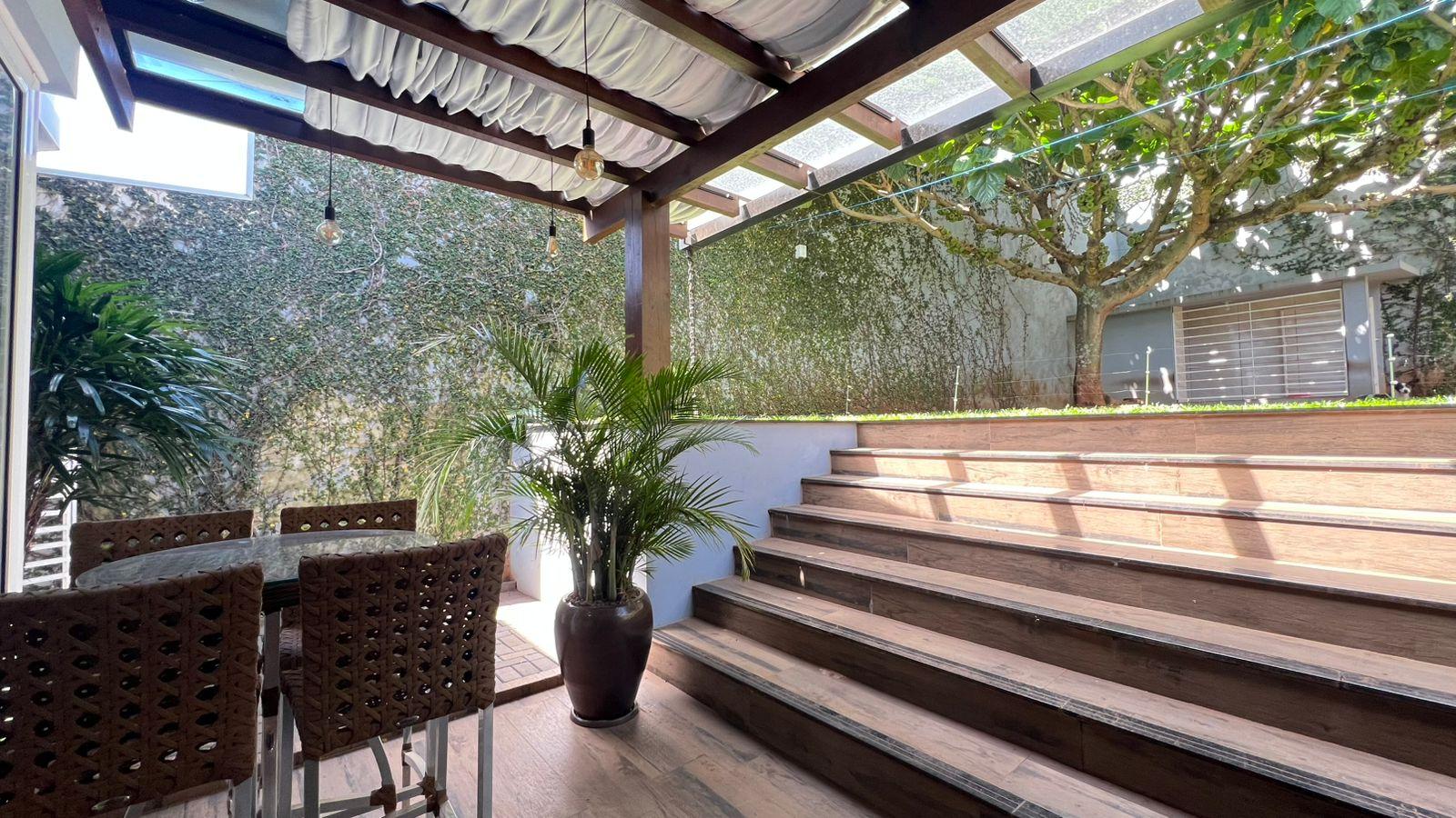 230m² de área construída + 60m² de pergolado; 3 pisos; 100% mobiliada.