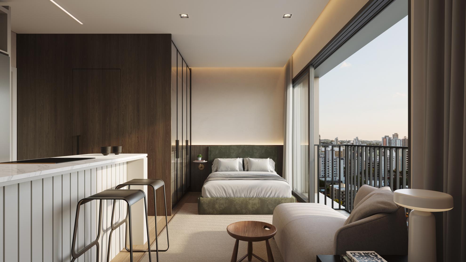 Studio e 2 suítes no centro de tudo.